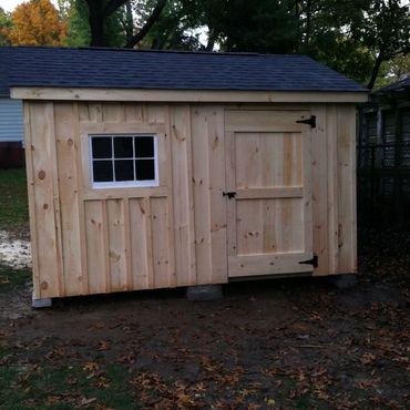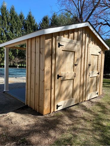 Our all wood custom built pine sheds are built to last. The board and batten construction combines strength with a refined rustic look that allows the shed to breathe, helping prevent decay. Unlike kits and pre-made sheds, our units are built on sit, providing you the freedom to dictate the size and place of your shed.